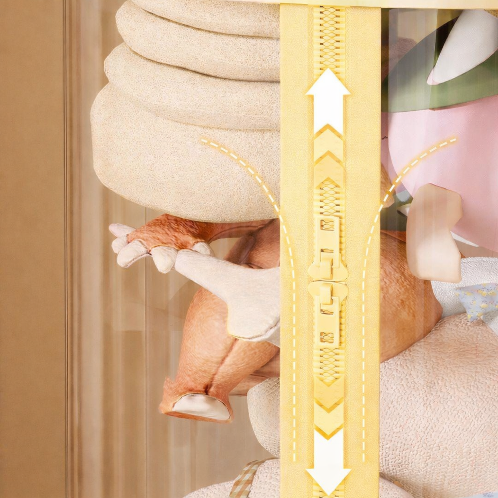Chega de espalhar pelúcias pelo quarto para encontrar aquela favorita, a criança visualiza tudo e pega o brinquedo que quiser de forma prática, rápida e divertida.