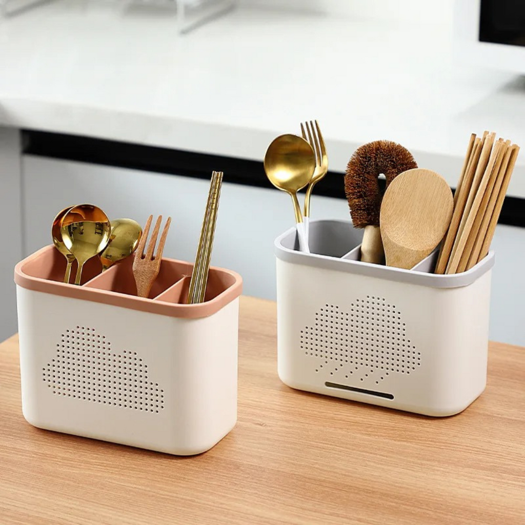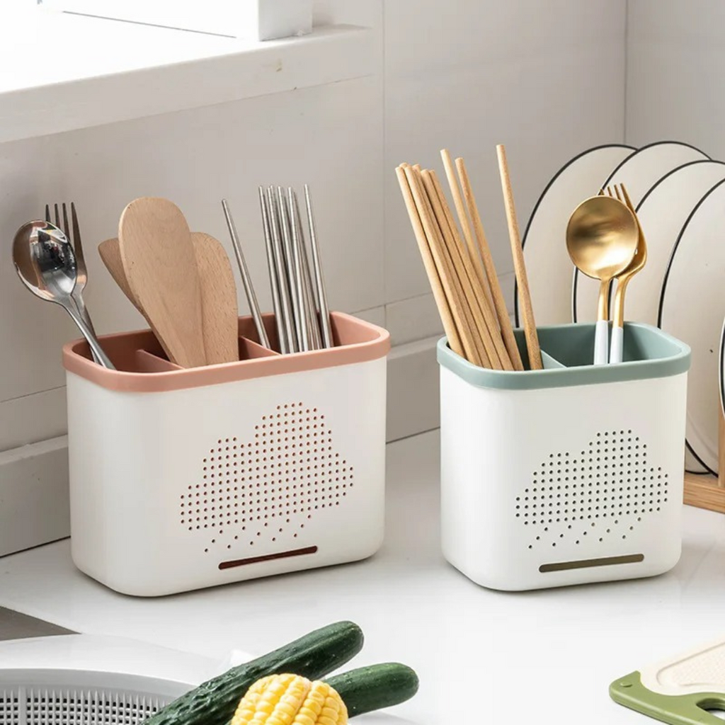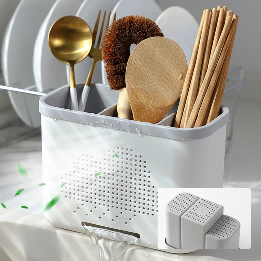 Escorredor Vazado Multifuncional Dupla Camada para Talheres e Utensílios